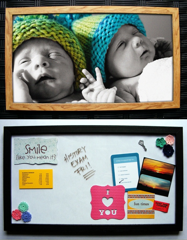 Transforming old picture frames into dry erase boards is an easy way to add a custom message center to your kid's room or a college dorm!